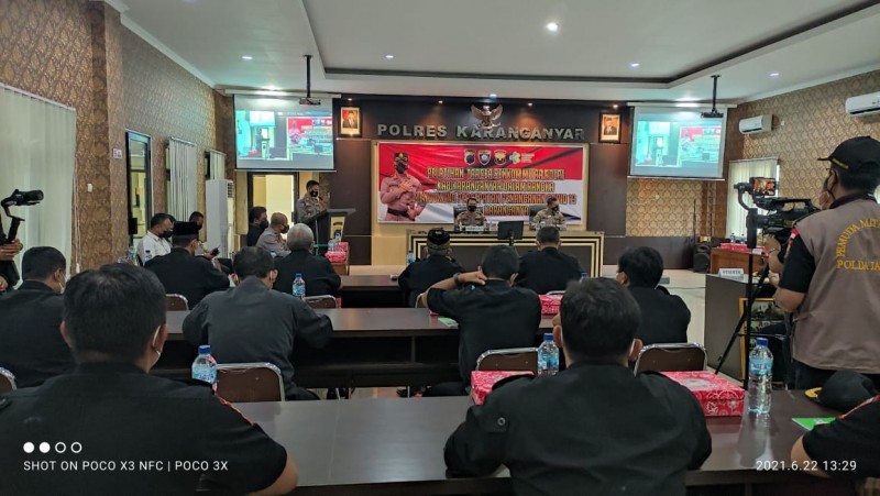 Pelatihan ini digelar pada hari Selasa (22/6/2021) secara luring di Aula Wira Pratama 1 Polres Karanganyar dan secara daring melalui Zoom meeting di 17 Kecamatan.